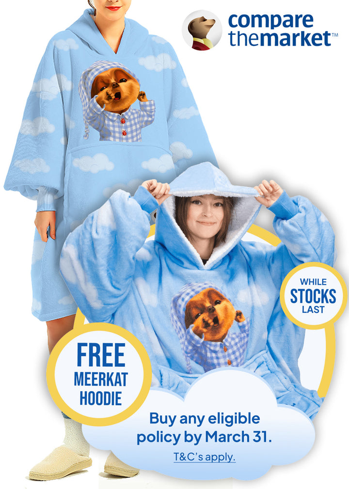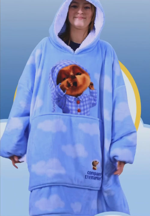 Compare The Market in partnership with FACEswag has just launched their 'Sleepy Oleg' Custom Snug Hoodie in the hugely popular Adult 102cm size! The popular bill-busting comparison website is offering their newest custom swag as a product activation for its customers which take up an eligible policy via comparethemarket.com.au.